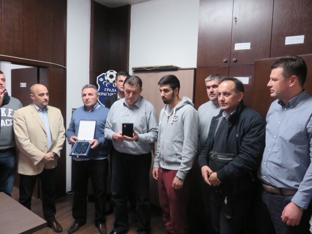 Predsednik gradskog i saveza regiona Zapadne Srbije Žarko Stevanović mu je tom prilikom u ime FSS uručio specijalno izrađenu zlatnu medalju, a Dragan Obradović potpredsednik saveza plaketu gradske fudbalskog saveza.